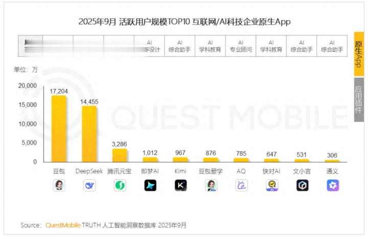 那么,这3000万的月活是个什么认识呢?约莫高出于(中国)安稳AI原生APP的第四。这也意味着,千问公测不及一个月,用户数就冲到了市集第四,况且距离老三腾讯元宝也很近了。凭证QuestMobile的阐述,轮番9月,元宝的月活跃用户为3286万,也只较阿里公布的千问月活高不到300万。