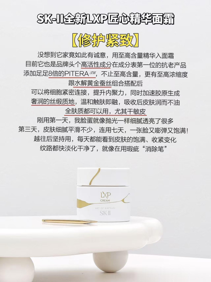 没猜测它家竟如斯有衷心,用至高含量精华入面霜,现在它亦然品牌头个高活性身分在身分表第一位的抗老家具,添加足足8倍的PITERA”,不啻至高含量,更有至高浓缩度,跟水解黄金蚕丝组合搭配后可以将细胞紧密连结,普及内聚力,同期加快胶原生成。