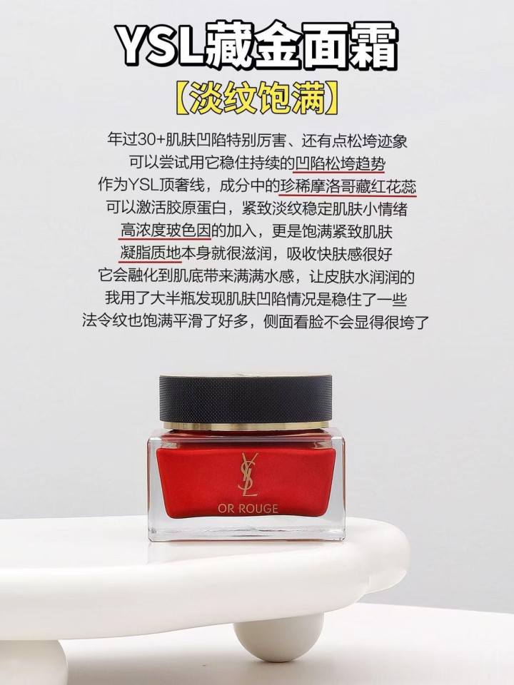 年过30+肌肤凹下终点狠恶、还有点松垮迹象,可以尝试用它稳住捏续的凹下松垮趋势,看成YSL顶奢线,身分中的帮忙摩洛哥藏红花蕊,可以激活胶原卵白,紧致淡纹解析肌肤小厚谊,高浓度玻色因的加入,更是充足紧致肌肤。